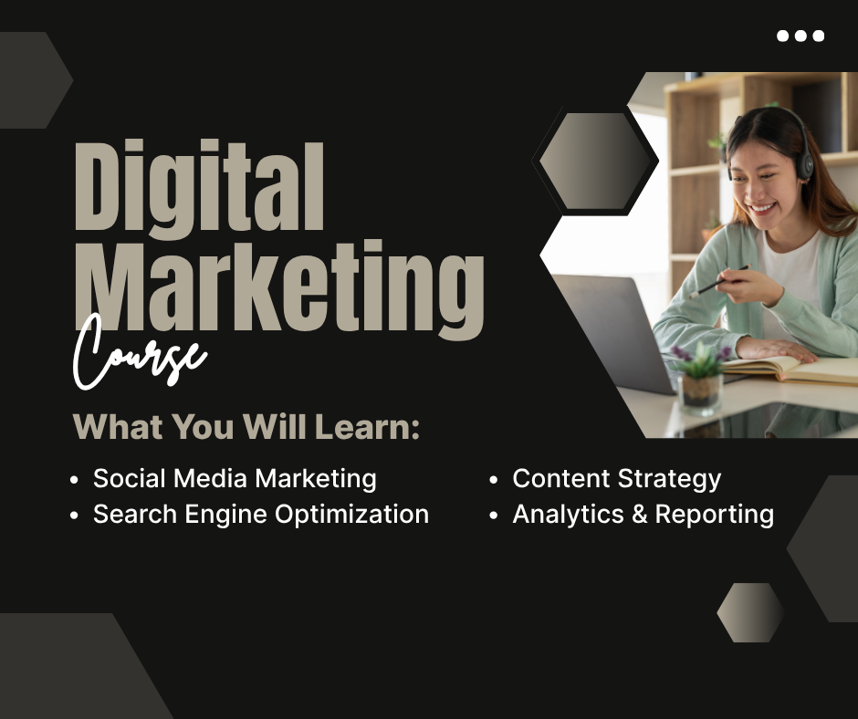 The digital marketing course covers topics like SEO, social media marketing and content creation.